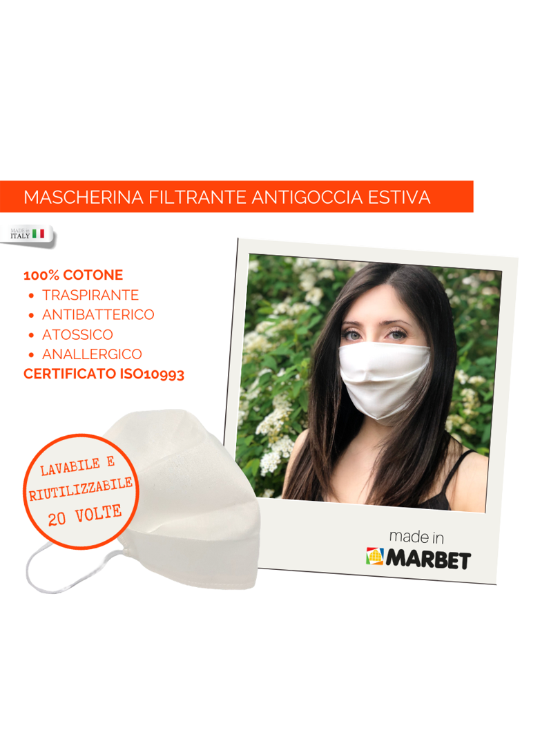 Mascherina per adulti del tipo FILTRANTE realizzata con un tessuto lavabile sino a 20 volte circa,
